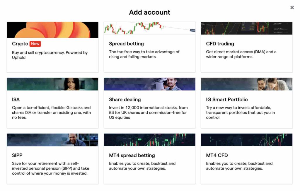 IG ‘Add Account’ section for UK customer