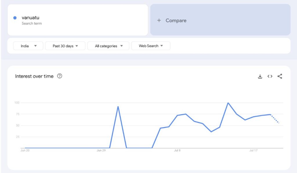 India search volume for ‘Vanuatu’ (Source: Google Trends)