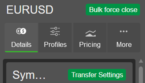 Version 9.8 introduces a fully redesigned symbol details layout with an intuitive tabbed structure – “Details”, “Profiles”, “Pricing” and “More”, making it easier to navigate through symbol settings and improving the overall user experience. As part of this redesign, less frequently used actions, such as symbol splits, have been moved to the “More” tab, creating a cleaner interface and providing faster access to key parameters used in daily operations. The “More” tab now includes a symbol split history, giving instant visibility into previous and current share data and further enhancing transparency in symbol management.